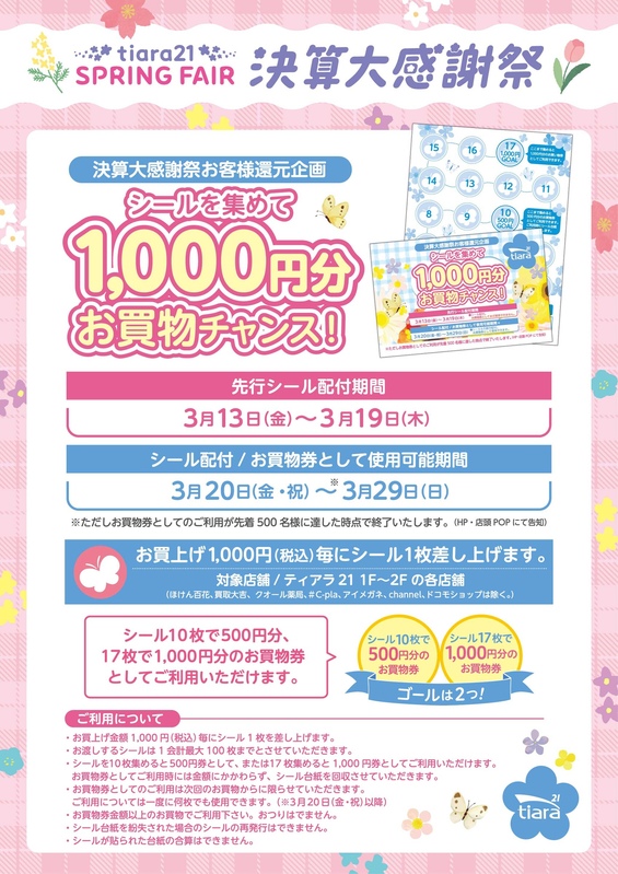 是非、この期間にシールをためて、3月20日からのお買物にご利用下さいませ。
