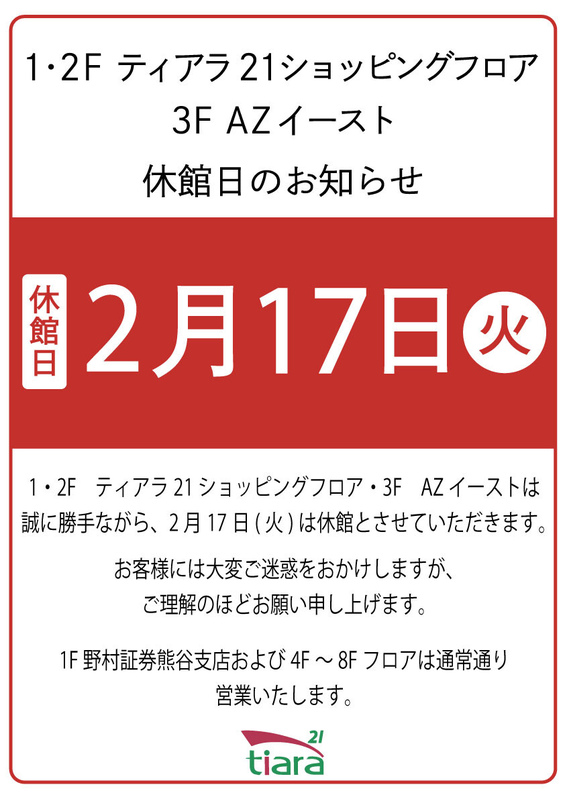 ティアラ21休館日のお知らせ