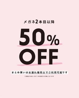 メガネ 2本目以降50%OFF‼️