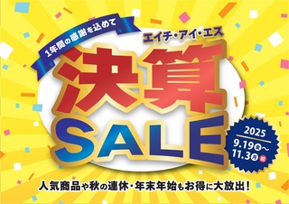 9月19日~11月3日まで決算セールを行っております! 国内・海外お得な商品を多くご用意しております!! また商品によっては割引キャンペーンを行っております!!! 冬休み・年末年始・春休みのご旅行をご検討中でしょうか! この機会に是非、スタッフへご相談ください! スタッフ一同心よりお待ちしております。