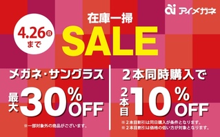 店頭サングラス、メガネのセット金額から最大30%OFF 2本セットでご購入いただくと2本目以降SALE金額からさらに10%OFF ※一部SALE対象外の商品がございます ※2本目は金額の低い方が対象となります
