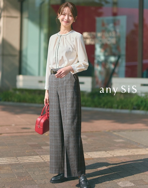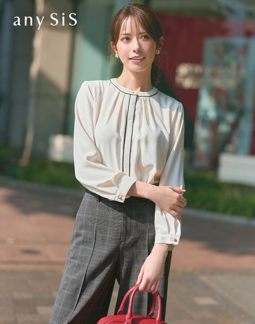 バイカラーデザインが映えるトロミ素材の上品ブラウスです♪ バイカラーデザインがアクセントになり、ジャケットインにも◎ シャツテールカットでボトムインしやすく、アウトで着てもスッキリシルエットに! パンツ 9,990円 サイズS.M.L 6色展開