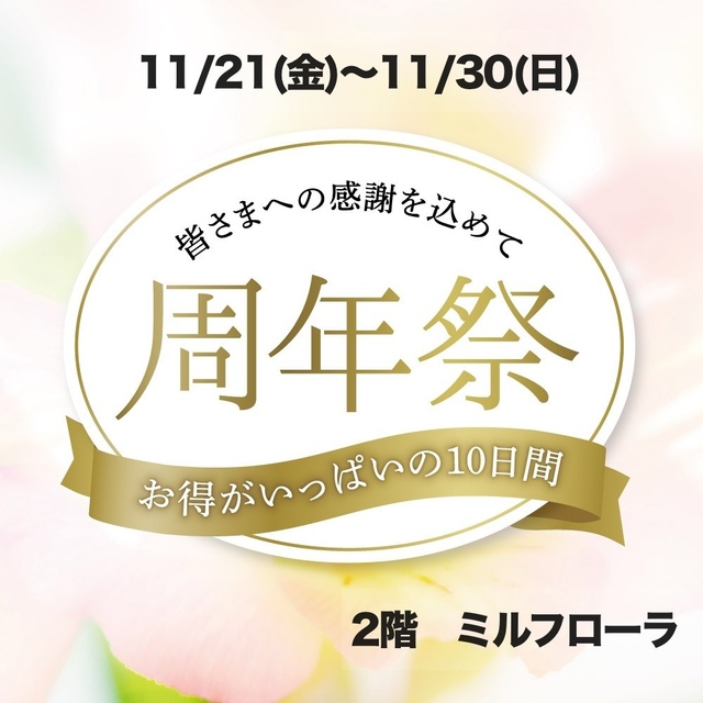 皆様への感謝を込めて、11月21(金)~30日(日)の10日間お得がたくさんの周年祭を開催いたします! 日替わりのお得アイテムや周年祭特別価格などたくさんご用意しておりますので、この機会にぜひお立ち寄りくださいませ♪ 500円 1000円ルースワゴンも開催中!掘り出し物がみつかるかも!