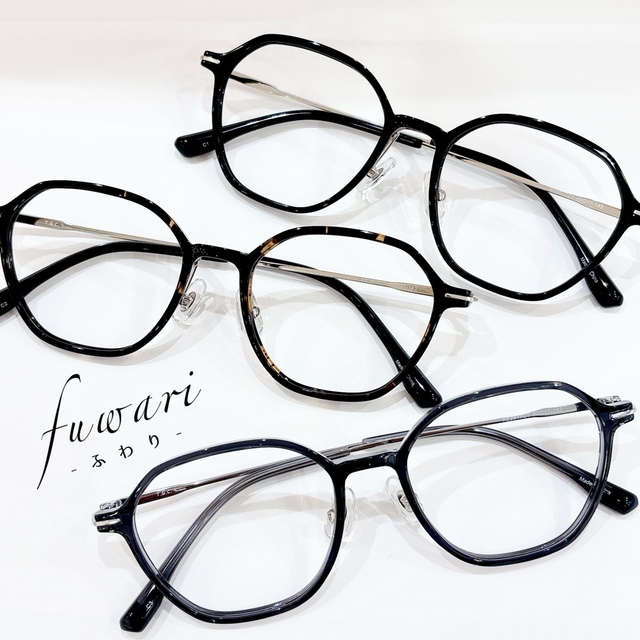 🫧🫧 f u w a r i - ふ わ り - 🫧🫧 《ふわりと軽い掛けごこち》で 大人気のfuwariシリーズに 新作フレームが登場✨🎉 軽くて、柔らかくて、壊れにくい ULTEM素材と 軽くて、柔らかくて、壊れにくい βチタンを組み合わせて 掛けごこちにこだわった1本です。 今回は個性的なヘキサゴンタイプ❣️ 縦幅が広くて今っぽいデザインです👓 撮影フレー厶👓 KE2517CT / 50□17-143 / 9,900yen この機会に是非店頭にてお試しくださいませ💁